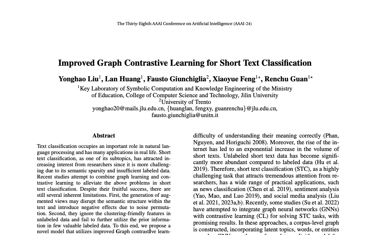 Improved Graph Contrastive Learning for Short Text Classification (AAAI 2024)