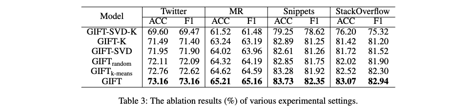 - Short text classification (STC) 를 위한 GIFT 모델 제안: GIFT can learn better short text representations and solve