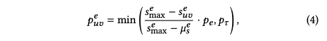 edge 를 제거할 확률은 식 (3) 과 같이 정의됩니다. 이 확률은 해당 edge 의 중요도를 계산하여, 중요도 값에 따라 확률이 달라지게 됩니다.