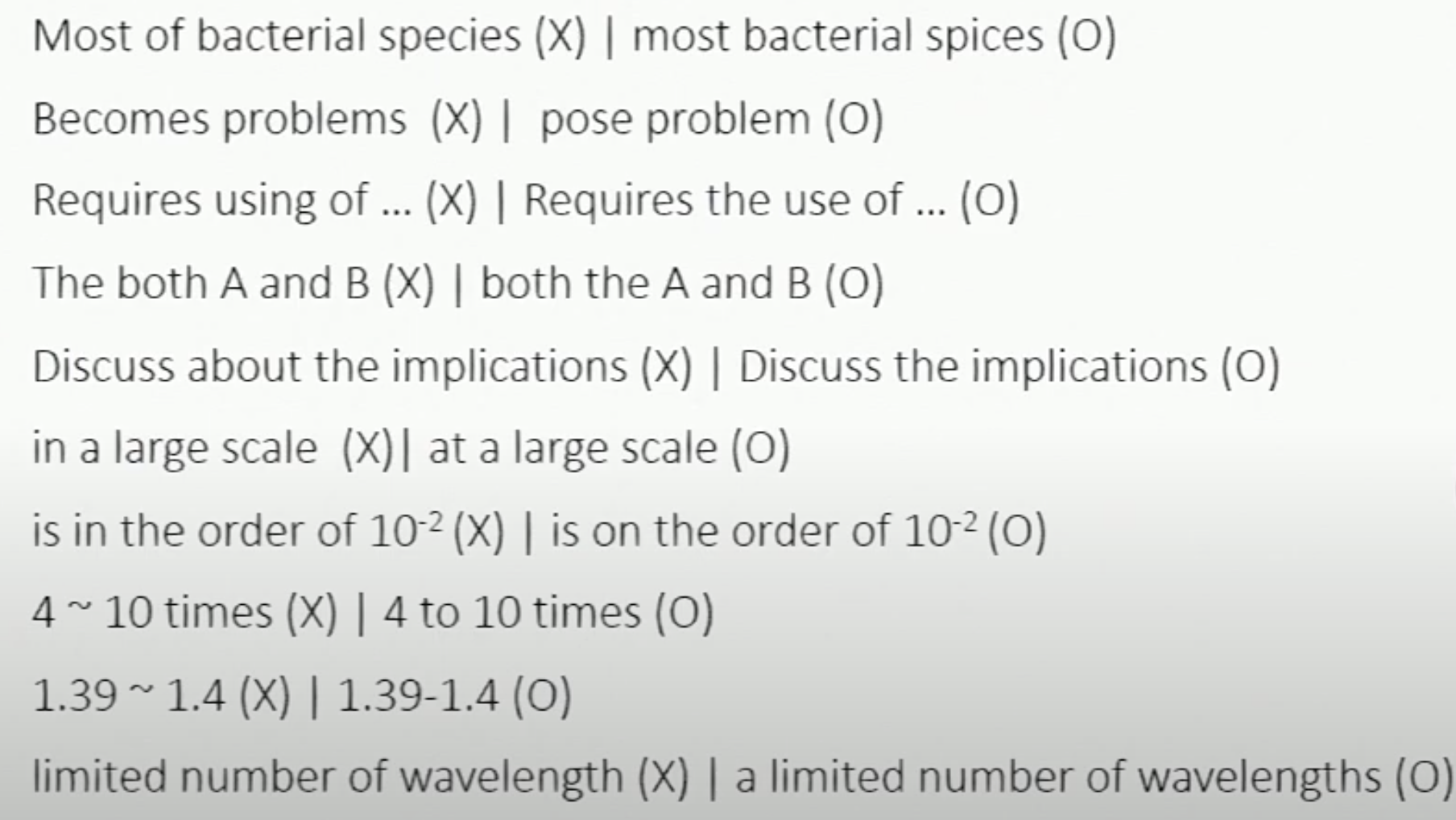 문법적으론 틀리지 않으나 , 더 formal 하고 strong 한 좋은 표현들
