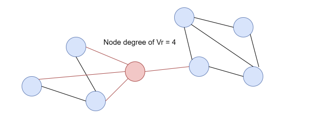 따라서 위의 그래프에서 빨간색 노드의 node degree = 4 입니다.