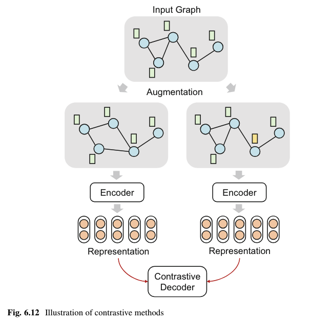그래프 혹은 노드 level 에서 , 유사한 graph (positive pair) 를 가까이 representation (pull close) 하고 , 그렇지 않은 graph (negative pair) 를 멀리 representation (push away) 하는 학습방법 입니다.