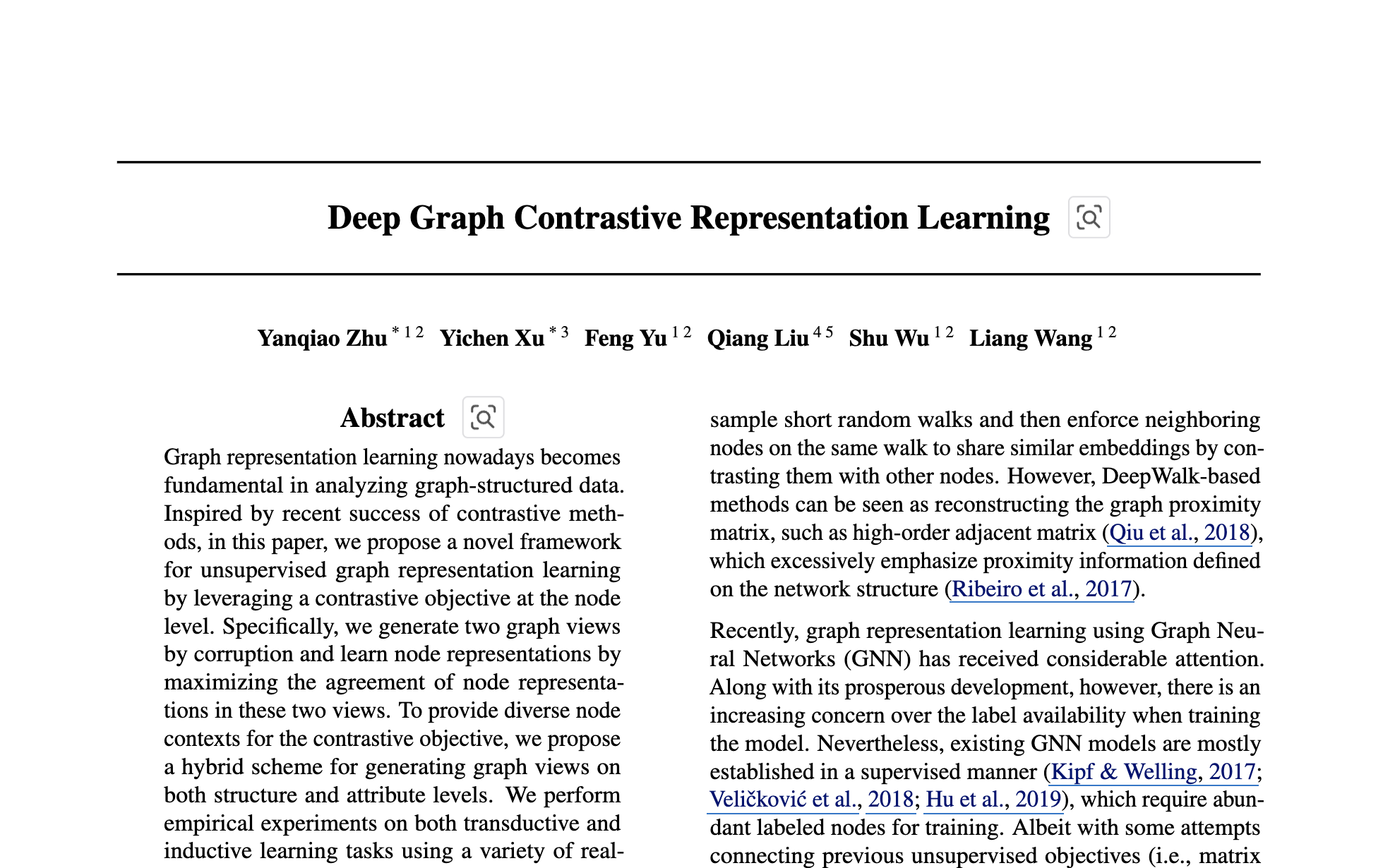 Deep Graph Contrastive Representation Learning (ICML 2020 GRL+ workshop)