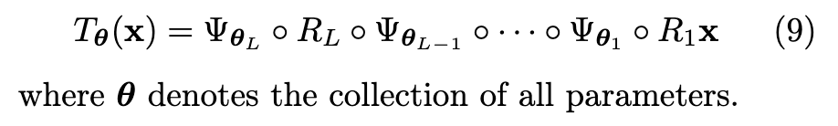 - 식 (9) 와 같이 크게 두 가지 종류의 학습 가능한 레이어들을 번갈아 쌓아서 구성됩니다.