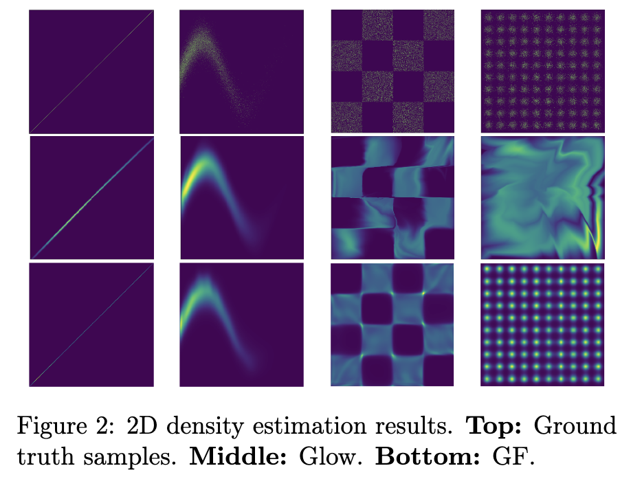 - Multimodal Distributions 처리: 뛰어난 표현력 덕분에 GF는 여러 개의 봉우리가 있는 복잡한 분포(multimodal distributions)를 샘플 생성 효율성을 저하시키지 않으면서 잘 포착할 수 있습니다.
