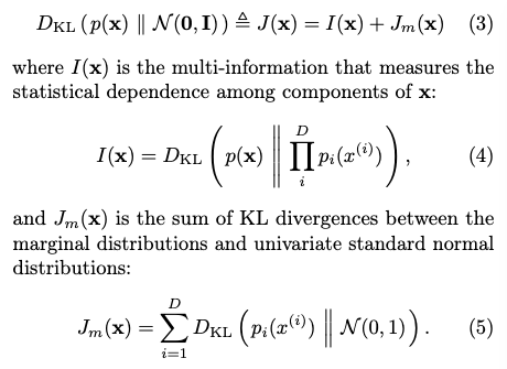- I(x) : Multi-information이라고 불리며, 데이터의 각 차원 구성 요소들 간의 통계적 의존성(상관 관계)을 측정합니다.