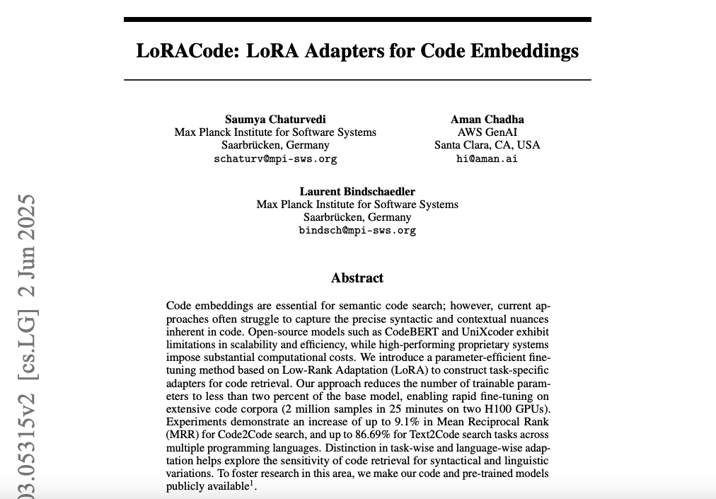 [Paper Review] LoRACode: LoRA Adapters for Code Embeddings (ICLR 2025 Workshop)