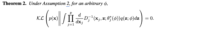 이 섹션에서는 DistVAE 모델이 원본 데이터의 실제 분포(ground-truth distribution)인 p(x)를 복구할 수 있는 이론적 근거를 설명합니다. 분석을 단순화하기 위해, 관측값 x가 p개의 연속 확률 변수(continuous random variables)로만 구성된 경우를 가정합니다. 특히 조건부 독립 가정과 분위수 추정과의 관련성을 강조합니다.