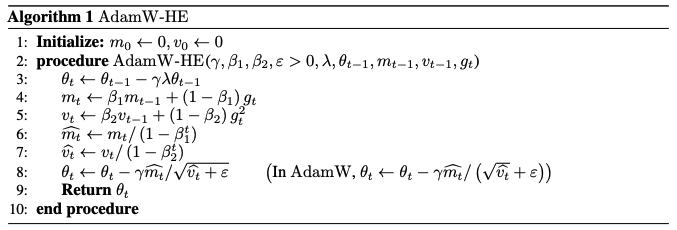 - Using AdamW-HE, a modified version of AdamW