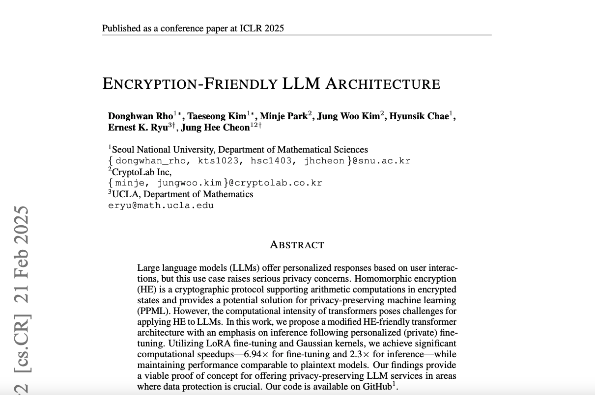 [Paper Review] Encryption-Friendly LLM Architecture (ICLR 2025)