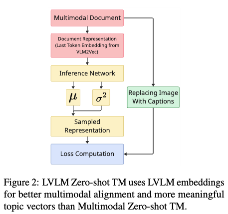 - LVLMs 는 이미지-텍스트 쌍에 대해 통합된(unified) 표현을 제공하지만, 이러한 LVLMs의 멀티모달 토픽 모델링 적용은 아직 충분히 탐구되지 않았습니다.