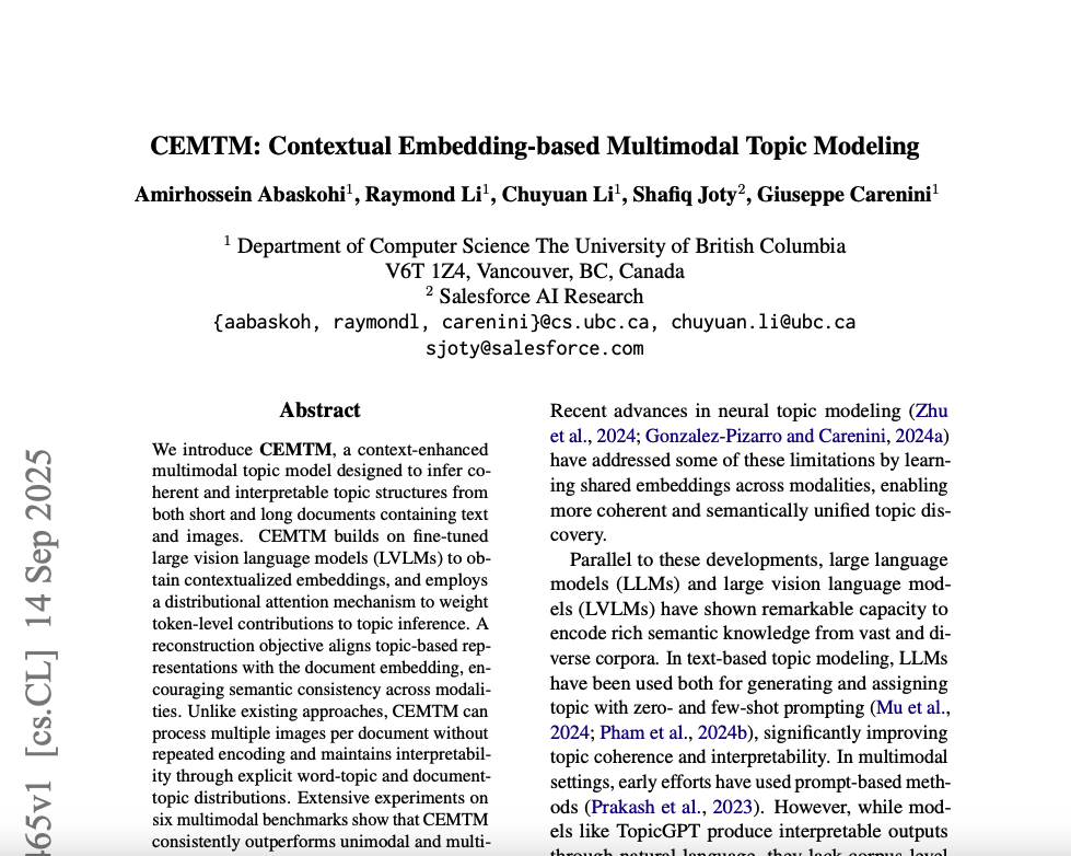 - CEMTM은 짧은 문서와 긴 문서 모두에서 텍스트와 이미지를 동시에 처리하여 일관성 있고 해석 가능한 토픽 구조를 찾아내는 것을 목표로 합니다.