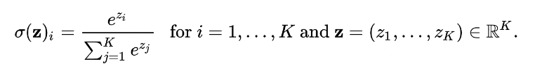 Softmax 함수는 숫자벡터인 z 를 input 으로 받아 다음과 같이 출력한다.